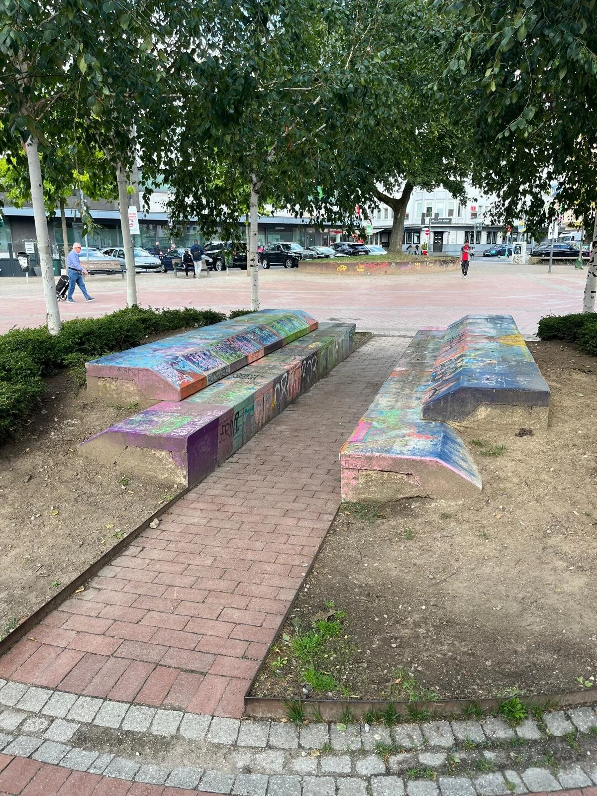One of MG’s core skatespots with ledges, blocks & banks surrounded by cafes, Kneipen and more.